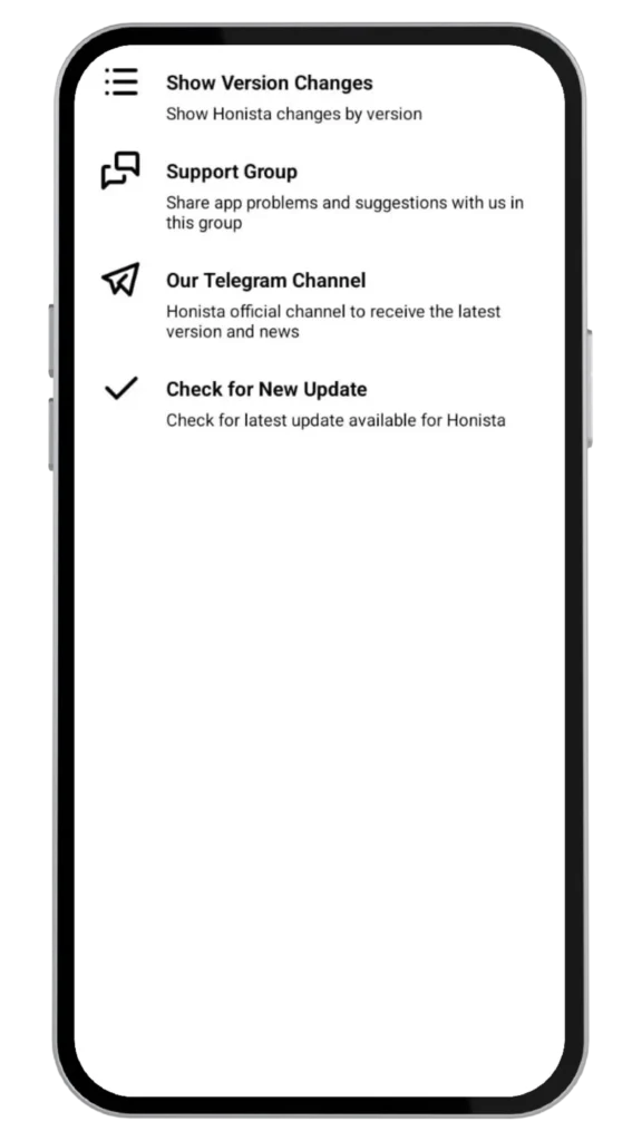 Honista App launches updated versions with new and unique upcoming features. So, an official support channel in Honista provides news about the latest versions. You can also share problems and suggestions about apps and get help in a short time. Now you can easily get timely information about version changes, new updates, and issues by connecting to the community group.
