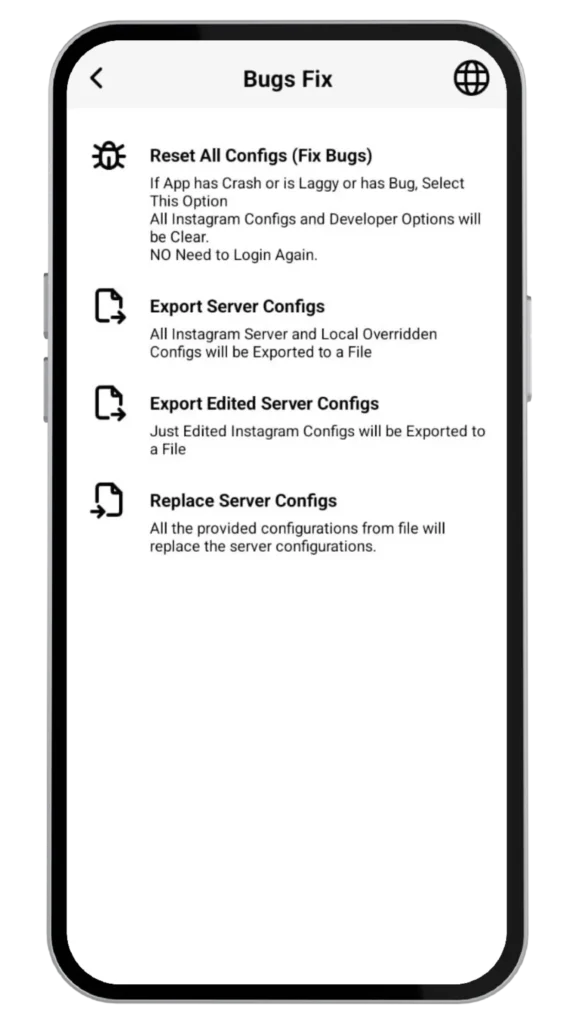 So, select any option in which you are facing an error, and all configs and developer options become clear without errors in the app.
