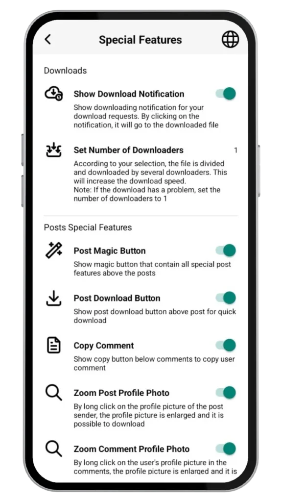 The real magic of Honista Apk is hidden in the profile magic for users. You can zoom in on the profile picture of any user, and it even shows a download button to download the profile photo in HD formats. The special features display unique actions for Profile and set notifications with multiple preferences. The notifications for follow back status keep you updated with the users and pages who are following your Profile.